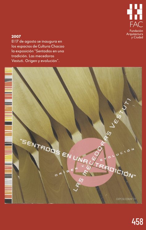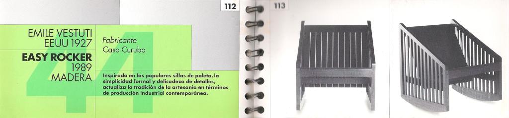 Tales apreciaciones, junto al interés por echar a andar, aunque sea de forma incipiente,un necesario trabajo indagatorio, se encuentran entre los detonantes que dieron origen a la Exposición Nº19 montada en el Centro Cultural Chacao del 17 de agosto al 21 de octubre de 2007, titulada “Sentados en una tradición. Las mecedoras de Vestuti, origen y evolución”, cuya curaduría y museografía corrió a cargo del arquitecto Enrique Fernández-Shaw (contando con la colaboración en el montaje de Héctor Sierra y Luis González), de cuyo catálogo diseñado por Eduardo López hemos extraído la portada para engalanar nuestra postal del día de hoy.