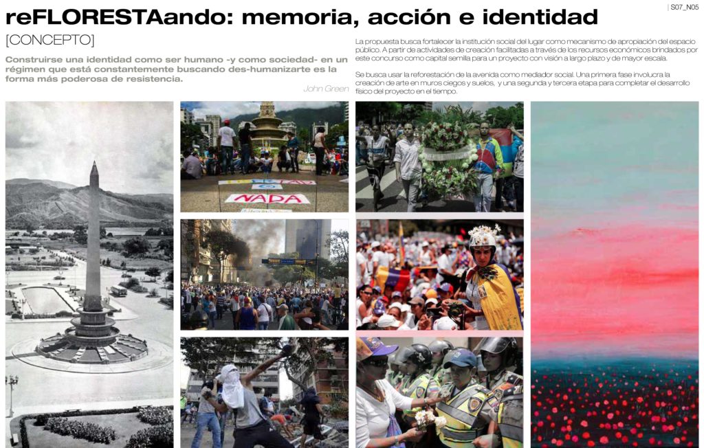 El concurso tuvo por objeto convocar a las mejores propuestas para situaciones propias del espacio público en la ciudad de Caracas, a partir de la intervención de lugares emblemáticos por su valor arquitectónico, histórico o de conjunto derivados de la investigación desarrollada por Mena, Micucci y Peña, la cual registra las obras desarrolladas en Caracas desde 1925 por reconocidos arquitectos, urbanistas, paisajistas y artistas norteamericanos en asociación con profesionales venezolanos. Ello como parte de un proceso de integración política, económica, social y cultural con diversos países que participaron en la construcción del imaginario moderno de la ciudad.
