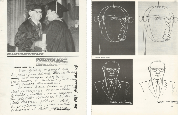 Las expresivas portada y contraportada de la revista incorporan dibujos a color del Maestro que formarían parte luego del nº16 de la Colección Espacio y Forma de julio de 1972 lanzado un mes después de la aparición del número de Punto 46. Todo ello, como ya adelantamos, formaría parte de los diversos homenajes que la FAU le ofreciera aquel año cuando Villanueva salía de “un obligado e involuntario reposo” y la Escuela de Arquitectura recién recuperaba el ritmo luego de haber transitado durante los dos años anteriores el proceso de Renovación Académica de la que el reconocido profesor fue partícipe entusiasta.