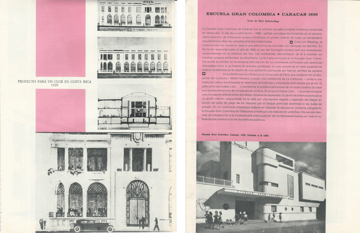 Como se señala en el “Editorial”, en Punto 46 se publicó “la totalidad” de la obra arquitectónica del Maestro “desde el Hotel Jardín de Maracay (1929), su primera construcción, hasta la más reciente, como lo es, el Museo Soto de Ciudad Bolívar, incluyendo algunas nuevas edificaciones de la Ciudad Universitaria de Caracas y la ampliación del Museo de Bellas Artes, ahora, por fin, en plena realización, e incluso proyectos de obras no construidas”. Sin embargo, llama la atención cómo el primer trabajo que aparece registrado, el “Proyecto para un club en Costa Rica” realizado en 1928, curiosamente, luego no será mencionado en posteriores antologías realizadas sobre Villanueva.