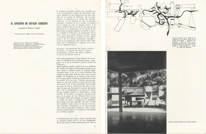 Sin embargo, son los textos inéditos de los ensayos ganadores del “Concurso Internacional” convocado por la revista centrado en valorar la obra del Maestro, cuyo primer premio recayó sobre el crítico y arquitecto japonés Makoto Suzuki con “El concepto de espacio cubierto” y el segundo sobre el también crítico e historiador francés Bruno Vayssiere con “Carlos Raúl Villanueva”, los que constituyen verdaderas piezas de colección al ofrecer miradas diferentes a las que convencionalmente habían caracterizado la aproximación a su obra.