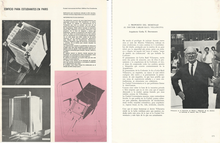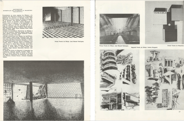 El valor de este ejemplar de Punto cobra relevancia, no sólo por ser el primer intento por mostrar a plenitud lo hecho por Villanueva como proyectista sino también por el enfoque didáctico que se le trató de imprimir, dirigido fundamentalmente a los jóvenes estudiantes de arquitectura. En tal sentido, en las primeras páginas aparecen los dibujos y la maqueta que obtuvieron premios en la «Exposición Homenaje» que se montó en la planta baja de la FAU UCV, correspondiéndole al bachiller José Manuel Rodríguez el primer premio de dibujo y el segundo al bachiller Andrés Norgaard, donde actuaron como jurados Luis Guevara Moreno, Orlando Flores y Antonio Granados Valdés. El premio único de maqueta le fue adjudicado al modelo sobre el Pabellón de Venezuela en la Expo de Montreal de 1967 realizado por los alumnos María E. Blanco, Henry Barrios, José Cesarino, Edgar Parra, Gustavo Poleo, Slava Ramírez e Ilana Silvy, siendo en este caso los miembros del jurado Eduardo Castillo, Pablo Lasala y Carlos Díaz Porta.