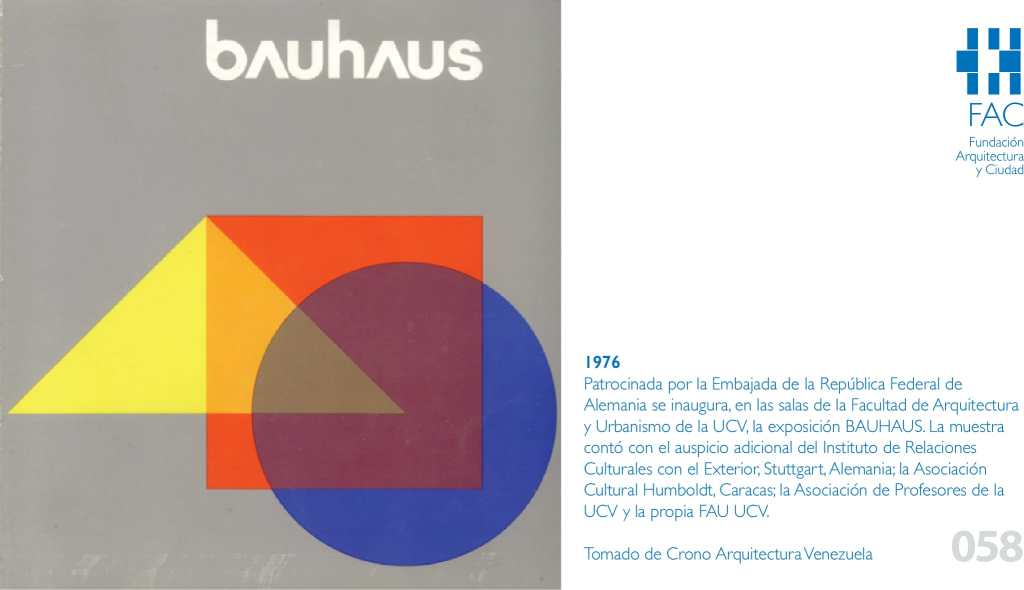 Cuando la Escuela de Arquitectura de la UCV transitaba sus primeros años de vida, sin lugar a dudas ocupan un lugar destacado en la atención de quienes enseñan y aprenden, el seguir los pasos, vida y obra de lo grandes maestros de la arquitectura moderna. Con la aparición de las primeras publicaciones periódicas y del montaje de exposiciones de fotografías o dibujos que llegan al país por los contactos que el Departamento de Extensión Cultural establece con las agregadurías de las embajadas, la divulgación de lo más resaltante de sus trayectorias no sólo se incrementa sino que denota preferencias y desata niveles importantes de idolatría.