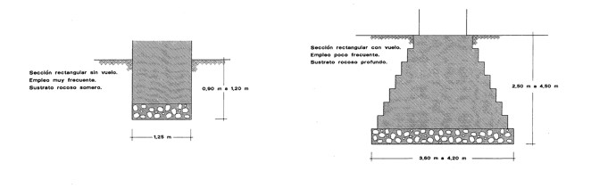García Gamallo apunta como, aunque “el empleo de las cimentaciones profundas es poco frecuente y se limita a algunos casos, no a todos, de construcción sobre terrenos deficientes” en el lapso que va entre el 1000 a.C. y 1800, “los pilotes se utilizan para cimentar sobre los suelos blandos o flojos, casi siempre en presencia de agua… y los pozos suelen emplearse cuando, para establecer la cimentación, es necesario atravesar terrenos en los que, por motivos técnicos o económicos, la hinca de pilotes no resulta viable ni rentable”.