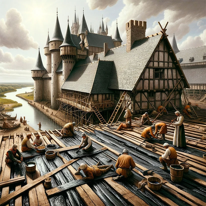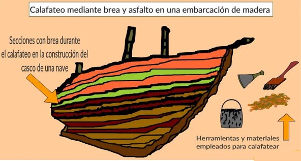 Durante el Neolítico, miles de años después, “además de la impermeabilización de edificios, el hombre tuvo la necesidad de proteger los materiales de las embarcaciones primitivas que permitieron la exploración, la pesca y el comercio con el auge del transporte fluvial”, actividades cruciales para el desarrollo y la expansión de la humanidad. Para sellar las primitivas embarcaciones, “utilizaban una emulsión bituminosa con turberas aplicada a la madera y otros materiales. De esta manera, las embarcaciones se volvieron impermeables y más fiables en las duras condiciones del transporte fluvial, lo que permitió a la civilización aprovechar los cursos de agua con mayor eficiencia que antes”.