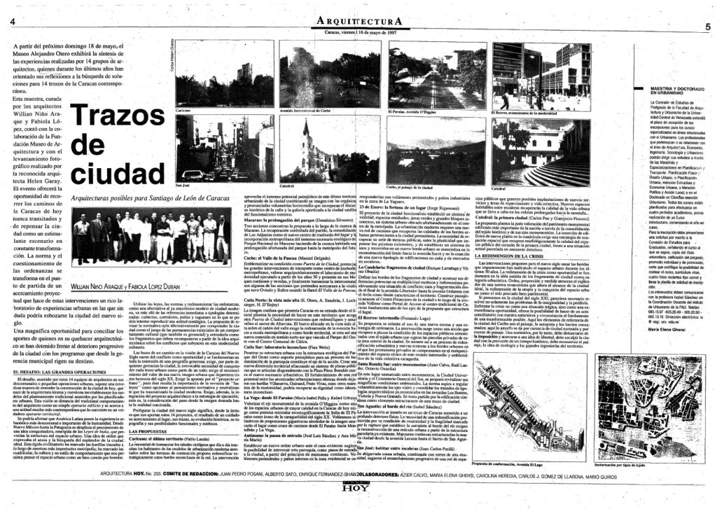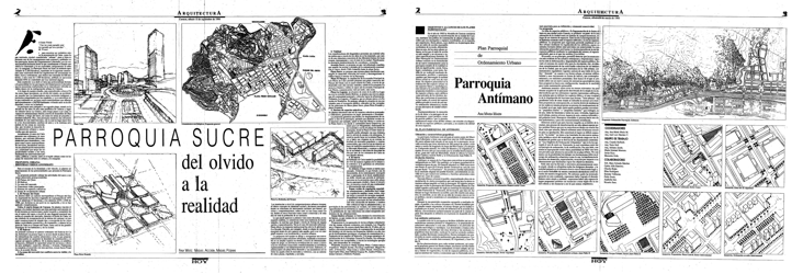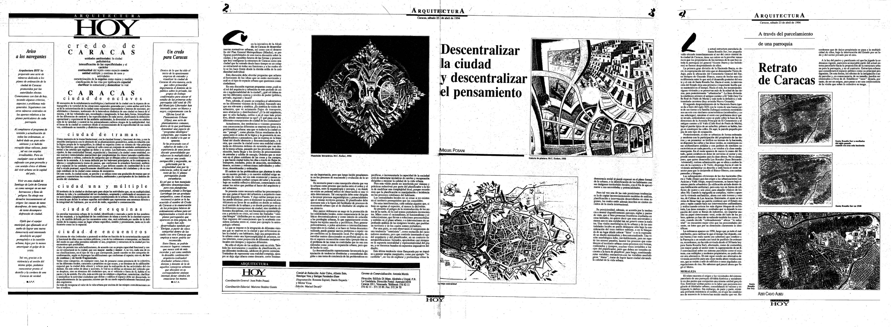 El equipo de Arquitectura HOY asumiría en cierta forma el relevo de Tenreiro-Sesto con otra actitud, dedicándose más a la tarea de registrar el proceso de conceptualización, discusión y presentación de los Planes Parroquiales que se fueron gestando. Es así como, a modo de preámbulo, en el nº 57 del encartado (23/04/94) aparecen “Credo de Caracas” (bajo la responsabilidad de Enrique Larrañaga), “Descentralizar la ciudad y descentralizar el pensamiento” de Miguel Posani y “Retrato de Caracas” de Azier Calvo.