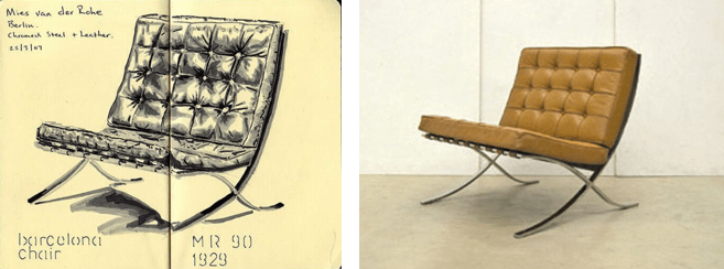 Para demostrar que los diseñadores a partir de la posmodernidad ya no se preocupaban como antes en lograr resolver problemas relacionados al uso de sus productos, Sato establece una impecable comparación entre la silla diseñada por el holandés Mart Stam en 1924 (una silla hecha para sentarse y todo un ejemplo en el que se mostraba el diseño moderno en su máxima expresión), y la diseñada por Mies van der Rohe y Lilly Reich para el pabellón de Alemania en la exposición de Barcelona de 1929 la cual, tras una puesta en escena deslumbrante en lo relacionado a su elaboración y línea, puso en aprietos a los reyes de España cuando, tras constatar su comodidad al sentarse, encontraron dificultades al intentar levantarse cuando la usaron por primera vez. “La silla -dirá Sato- representaba la más avanzada modernidad dentro del pabellón más moderno de la Feria. La silla de Mart Stam era moderna, el sillón Barcelona…representaba la modernidad”.