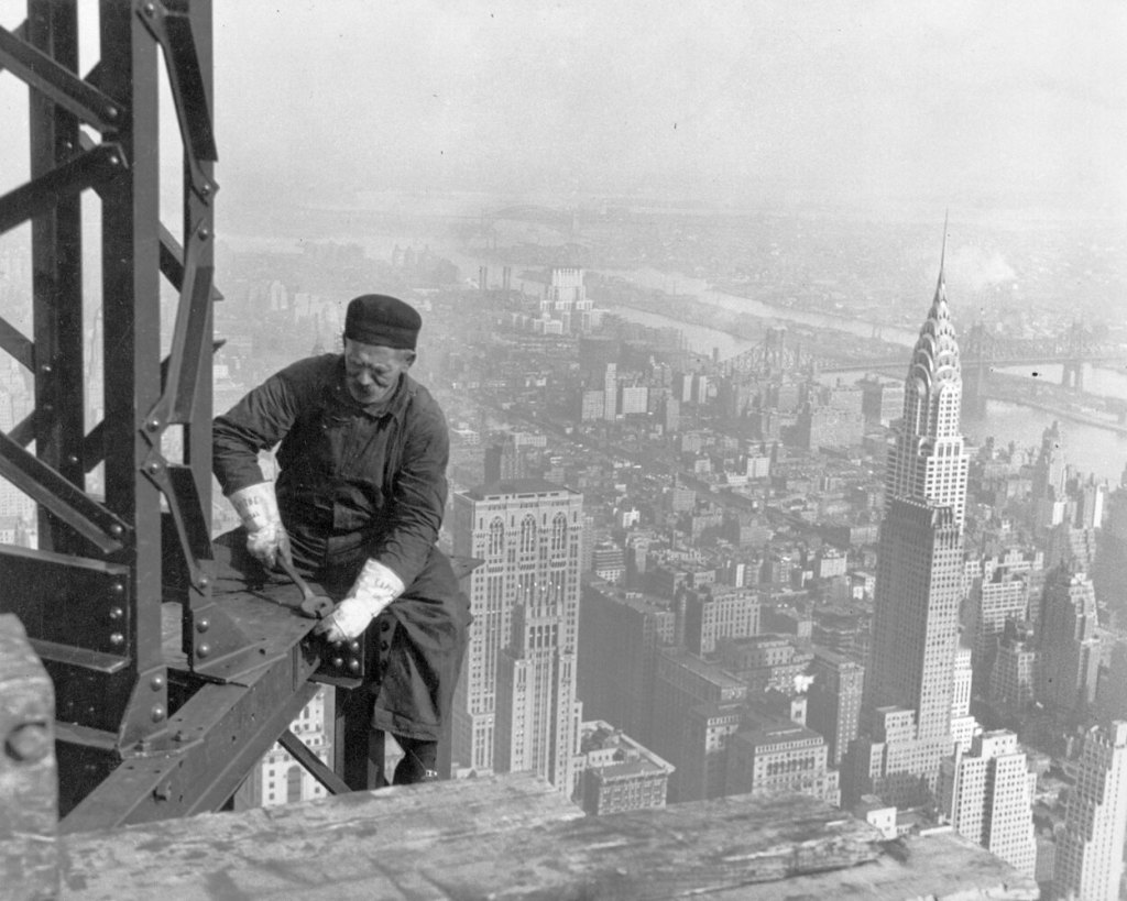El Empire State Building, por ejemplo, comenzó a construirse en 1930 en Nueva York, marcando un avance fundamental en la arquitectura con el uso del hormigón y el acero que, combinados, permitieron que los edificios crecieran verticalmente, iniciando un nuevo proceso global de densificación urbana. Bajo la dirección del estudio de arquitectura Shreve, Lamb & Harmon Associates y la empresa de construcción Starrett Bros. & Eken, la estructura se elevó a un ritmo de 4,5 pisos por semana, completando los 102 pisos en solo 1 año y 45 días de construcción. El fotógrafo y sociólogo Lewis Hine registró el proceso de construcción del Empire State en fotografías icónicas que muestran los riesgos que esta técnica supondría para la construcción desde entonces.