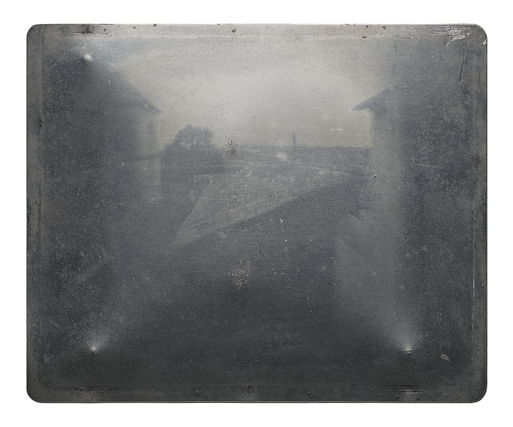 La primera imagen grabada en papel fue realizada por Joseph Nicéphore Niepce, un inventor francés nacido en 1765 que se interesó por las enseñanzas de Leonardo Da Vinci sobre los métodos y efectos de la cámara oscura. A principios del siglo XIX, después de que varios pintores y dibujantes utilizaran la imagen invertida resultante de la cámara oscura para reproducir la realidad en sus dibujos, los inventos y descubrimientos relacionados con la Revolución Industrial permitieron fijar una imagen proyectada desde esta herramienta sobre papel o metal. A principios del siglo XIX, utilizando una caja de madera orientada hacia el jardín y un papel tratado químicamente, Niepce logró imprimir la imagen de su patio trasero en la hoja, dando como resultado la que se considera la primera fotografía de la historia -que tuvo como objeto principal la arquitectura de un jardín residencial.