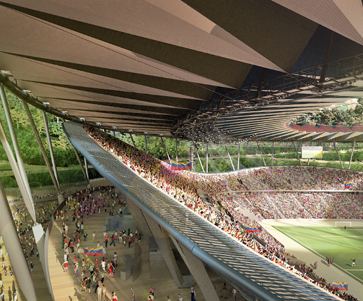 Una descripción más amplia permite descubrir que, “las columnas circulares y los conductos mecánicos redondos forman un paisaje arquitectónico a nivel del suelo. Las formas redondas de estos elementos estructurales suavizan la transición entre la luz y la sombra y crean un ambiente luminoso y seguro eliminando la división nítida entre la luz y la oscuridad.