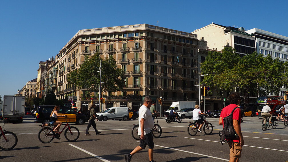 Mejorar el dominio público: invertir en mejoras de infraestructura para la seguridad y confort de los peatones y ciclistas, como el acceso a transporte público de calidad, facilitando las conexiones locales a los trabajos y servicios intercomunitarios. Incluye la mejora de espacios públicos existentes y creación de nuevos que contribuyan a la movilidad y vida social de la comunidad. Barcelona busca reducir los niveles de contaminación ambiental restringiendo la circulación vehicular, instaurando supermanzanas que priorizan al peatón y potenciar la vida local.