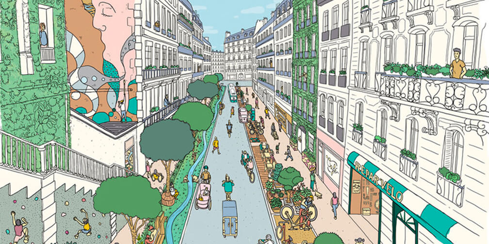 Siguiendo políticas implementadas desde el 2014, en su segundo mandato busca ejecutar una sucesión de políticas radicales para minimizar la supremacía vehicular en la ciudad, con la meta de reducir los niveles de contaminación y ganar espacios para los árboles, los peatones y los ciclistas. ¿De dónde se origina la intensidad de la propuesta de Hidalgo? En el crono-urbanismo, concepto desarrollado por el Profesor de la Universidad Paris-Sorbonne, Carlos Moreno.