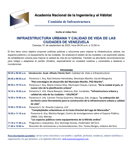 La Comisión de Infraestructura de la Academia Nacional de la Ingeniería y el Hábitat invita al video-foro