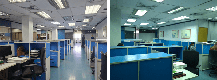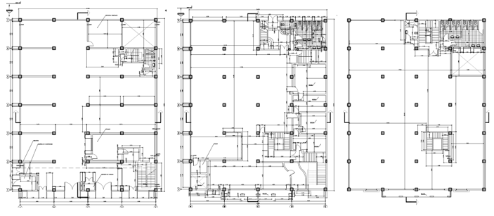 La planta rectangular de 750 m2 aproximadamente obedece a un módulo estructural de 6 x 5 mts que contribuye dar orden a la composición de las fachadas y permite la libre disposición de las áreas de oficinas. En total el edificio tuvo originalmente un área de construcción aproximada de 2334 m2, distribuidos entre planta baja (750 m2) y dos plantas tipo (de 780 m2 cada una) a los que hay que sumar la ubicación en la azotea un local de 24 m2 para los equipos de aire acondicionado.