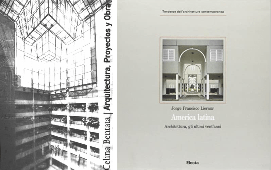 5. Izquierda: Poster de la exposición “Celina Bentata. Arquitectura, Proyectos y Obra”, Museo de Arte Contemporáneo de Caracas Sofía Imber, 1999. Derecha: Portada del libro America Latina.Architettura, gli ultimi vent’anni de Jorge Francisco Liernur, 1990