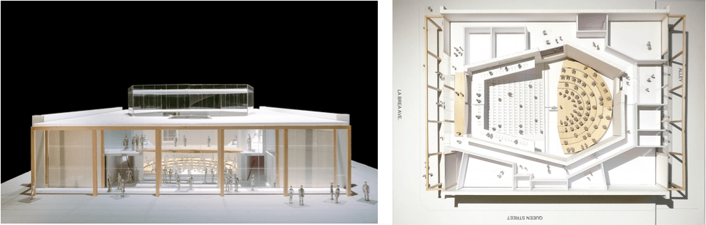 Como colofón de todo el proceso que se inició en 2012, es la noche del 23 de diciembre de 2014 cuando Gehry presenta en Miraflores ante las máximas autoridades del país, acompañado de Dudamel, varias maquetas y planos del proyecto que se había comprometido a hacer. De dicha reunión fue mucha y a la vez muy uniforme la cobertura mediática y escasa la información relacionada con material que pudiese ser de provecho para llevar a cabo de manera rigurosa un análisis de la propuesta, más allá de que quizás con base a la programación inicialmente formulada se contaría con dos salas de conciertos para 3.700 personas (originalmente sería una con 1.567 butacas), apoyadas con sus respectivas áreas de servicio y de la edificación que albergaría toda la actividad docente del Centro de Acción Social para la Música en la “ciudad musical de Venezuela”.