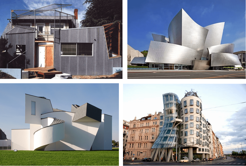 Su camino al estrellato se inicia con la remodelación entre 1977 y 1979 de su propia vivienda en Santa Mónica (California) signada por una estética que fue catalogada de deconstructivista, y alcanza su nivel máximo con el Museo Guggenheim de Bilbao (1997) en la que plasma su visión de la arquitectura como obra de arte. El Vitra Design Museum (1989-90), junto a Günter Pfeifer en Weil am Rhein, Alemania; la Dancing House (1992-96), junto a Vlado Milunić en Praga; y el Walt Disney Concert Hall en Los Ángeles por nombrar sólo unas cuantas, son obras que se han convertido en íconos dentro de las ciudades donde se han realizado demostrando una actitud siempre abierta a la experimentación, caracterizada por un interés particular en la manipulación y yuxtaposición de las formas, por la innovación técnica y el contenido conceptual y espacial de los edificios.
