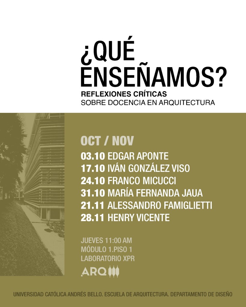 La Escuela de Arquitectura de la UCAB te invita a participar en este primer ciclo de charlas sobre ¿Qué enseñamos?