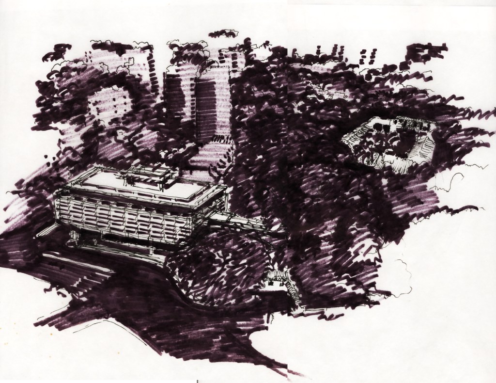 Las bases del concurso establecían la necesidad de proyectar un área complementaria al museo que comprendiera, por un lado, biblioteca, sala de exposiciones, cafetín y librería y, por el otro, un área de 1.200 m2 para el uso de oficinas rentables. Pero el elemento más disonante y difícil de integrar sería la incorporación de un estacionamiento mecánico para un mínimo de 120 automóviles. Así mismo, entre otros requisitos fundamentales, se encontraba el generar una conexión entre la zona del museo y el terreno adyacente donde se planteaba el desarrollo del concurso, ubicado sobre la avenida Panteón en la urbanización San Bernardino, Caracas.