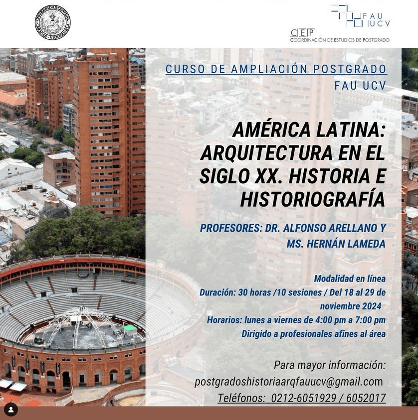 La Coordinación de Maestrías de Historia y Restauración FAU-UCV anuncia la apertura del curso América Latina: arquitectura en el siglo XX. Historia e historiografía.