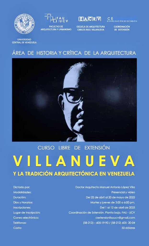 El Área de Historia y Critica de la Escuela de Arquitectura Carlos Raúl Villanueva y la Coordinación de Extensión de la FAU UCV invitan al