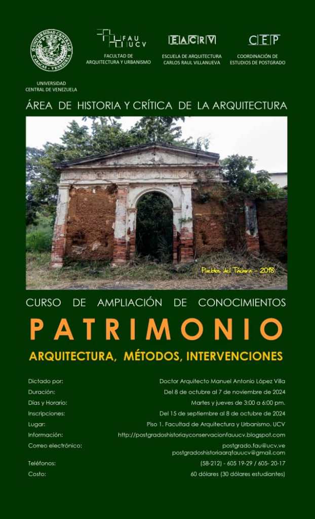 Lugar de inscripción: Coordinación de Extensión. Planta baja. FAU UCV