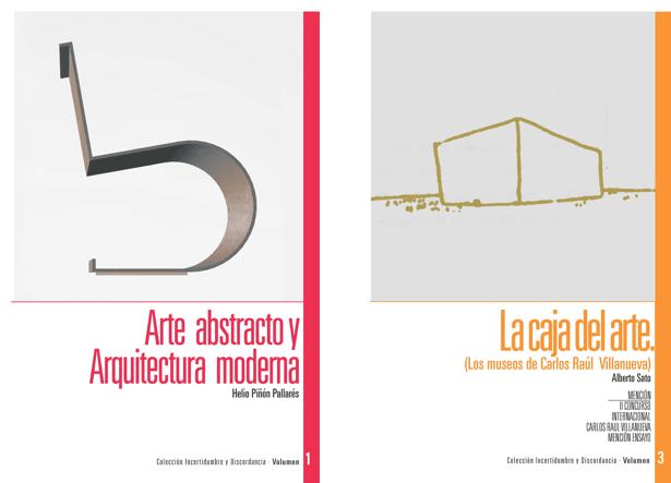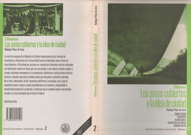 Lo segundo que cabe apuntar es que el trabajo enviado por Pérez de Arce se incorporó a una prometedora colección que bajo el título de “Incertidumbres y Discordancias”, impulsada por la Comisión de Estudios de Postgrado de la FAU UCV a instancias de las profesoras Carmen Dyna Guitián y Milena Sosa, y más específicamente desde la Maestría en Diseño Arquitectónico (coordinada en aquel entonces por José Rosas Vera), permitió agrupar tres trabajos del cual el que nos ocupa tomaría el número 2. El número uno le correspondería al texto Arte abstracto y Arquitectura moderna de Helio Piñón Payarés y el número tres aI de Alberto Sato titulado La caja del arte (Los museos de Carlos Raúl Villanueva), que obtuvo mención en el concurso ganado por Pérez de Arce.