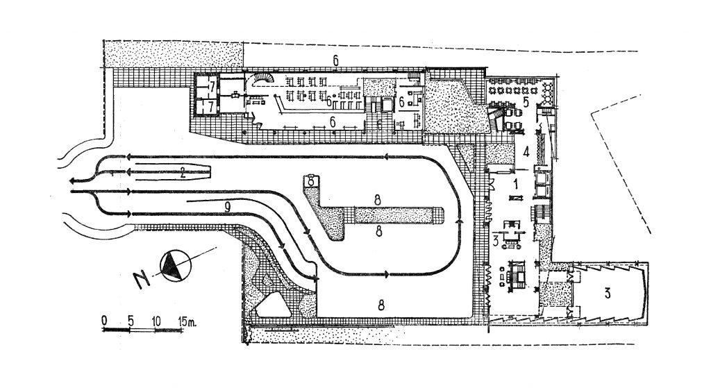 La respuesta, que tendrá de nuevo a la arcilla como material protagonista y el sabio manejo de la luz, la espacialidad y la escala como acompañantes, “aprovecha sus pliegues para acoger un horno preexistente de ladrillos cerámicos” que ocupará el centro de un patio que funge de espacio ordenador, de acuerdo con la reseña publicada en www.arquitecturaviva.com. La descripción continuará de la siguiente manera: “Dos muros de 5,4 metros de altura dividen las partes principales de la nueva construcción: a un lado, se encuentra la zona de visitantes, alargada y delimitada por estanterías que exhiben piezas cerámicas; y al otro, cerca de la orilla del río, el área de trabajo de los artesanos, cuyo suelo de tierra apisonada aprovecha la humedad natural. Entre ambos se encuentra un largo pasillo y el volumen cilíndrico que alberga el antiguo horno. En el interior, el espacio arquitectónico permite recorrer el proceso de elaboración de las piezas bajo una claraboya. Escoria de ladrillo, productos defectuosos y piezas sobrantes tras la cocción se rompen y se reutilizan como material de acabado para cubrir la superficie del patio. Los muros de ladrillo calados del complejo, que incorporan ventanas bajas, dirigen las corrientes de aire y crean conexiones entre el interior y el exterior”.