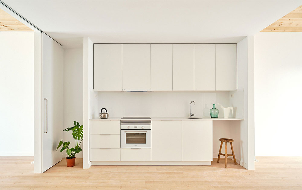 Sombreado por la celosía, pero abierto a la ventilación, el espacio interior del taller es como una prolongación del exterior que en el centro circular a dos alturas contiene el área de trabajo con una mesa giratoria. “Aquí, se puede encontrar la conversación del artista con sus obras, y la de él mismo y su sombra en el silencio. Al mismo tiempo, se puede ver y sentir el paso del tiempo en las obras de terracota con el movimiento de la luz solar”.