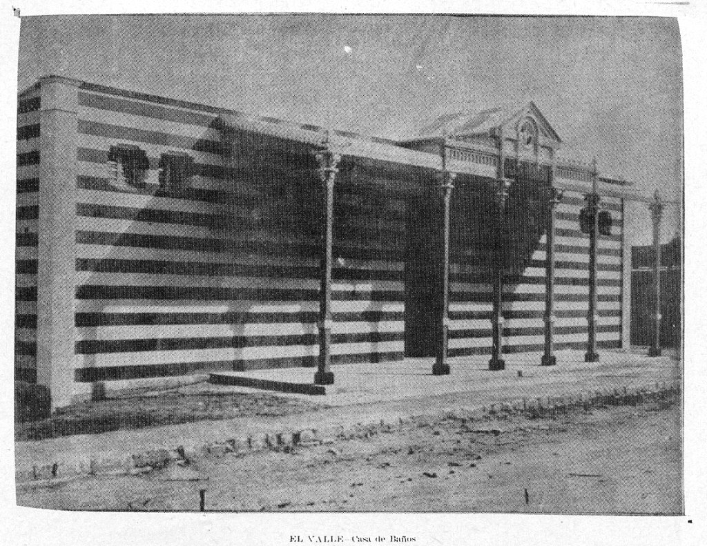 En El Cojo Ilustrado nº 329 de junio de 1905 aparece una fotografía y una nota que apunta lo siguiente: “La casa de baños recientemente construida en el vecino pueblo de El Valle, llena todas las exigencias y posee las comodidades que dichos establecimientos reclaman. Su construcción es elegante y sólida como se verá en la copia con que adornamos una de nuestras columnas”. De la imagen (obtenida a través de https://mobile.twitter.com/cojoilustrado/status/1167079885707329536) se puede deducir que el proyecto elaborado por Chataing (de quien curiosamente no se hace mención por ningún lado) sólo fue construido parcialmente, prescindiéndose en buena medida de los elementos que lo conformaban, lo cual obligaría a indagar aún más acerca de las razones por las que ello pudo haber ocurrido. El destino definitivo del edificio en el tiempo sería otra incógnita interesante a despejar.