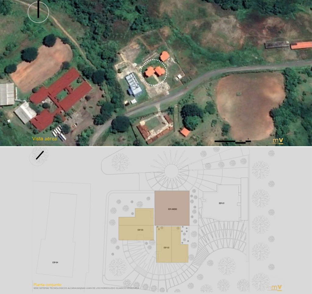 La primera, emplazada en el sector El Castrero, en la ciudad de San Juan de los Morros, estado Guárico, proyectada por el arquitecto Carlos Antonio Pérez Hernández, consistió en la rehabilitación y cambio de uso de 2 de 4 edificaciones en estado de abandono que el consejo federal de gobierno, ente gubernamental venezolano, decidió reacondicionar a los fines de albergar el edificio sede de la empresa que le dio título a propuesta presentada. Además, en una segunda etapa, se previó la construcción de una nueva edificación.