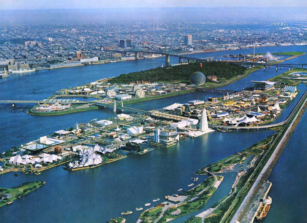 La Expo de Montreal 1967 cuyo lema era «El hombre y su mundo», de la cual acaban de cumplirse 50 años de su apertura, podría decirse que conserva intacto el espíritu de New York 64: la parodia estilística y el abigarramiento formal vuelven a ser las notas sobresalientes. En Montreal, además, se sentirá como en ninguna otra Exposición el rol protagónico de quienes durante el siglo XIX ocupaban el papel secundario: los pabellones nacionales. No es casual que la Expo-67 se recuerde por la presencia casi emblemática del enorme domo que Buckminster Fuller diseñó como Pabellón para los Estados Unidos. Junto a él también brillarán el «habitat» de Moshe Shafdie y las «estructuras tensadas» de Frei Otto representativas de la República Federal de Alemania, mientras las innovaciones tecnológicas y los alardes comunicacionales, por reiterativos, dejan ya de tener interés.