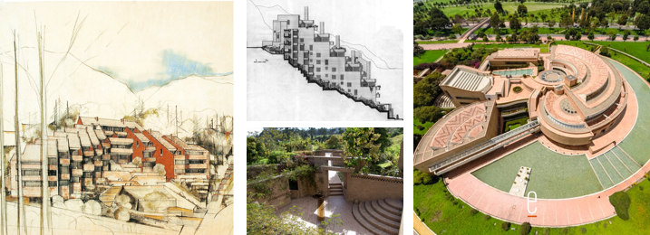 “Topografías pone en evidencia una de las preocupaciones centrales en el trabajo de Salmona: la forma como el edificio se enfrenta al lugar en donde será construido, al adaptarse al terreno y sus características ambientales o al utilizar la arquitectura misma para construir el lugar y generar y controlar su topografía”. Se muestran aquí otros cuatro proyectos: Cooperativa Los Cerros, Bogotá (1961-63), Edificio Alto de los Pinos, Bogotá (1976-81), Casa en Rio Frío, Tabio (1997-2000) y Biblioteca Pública y Parque Virgilio Barco, Bogotá (1999-2002).