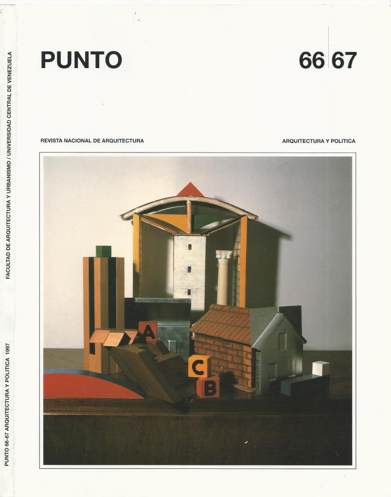 El texto elaborado por Frontado y Larrañaga para PUNTO, titulado “Proyecto para la Facultad de Ciencias Jurídicas y Políticas /UCV”, por tanto, data de una fecha muy cercana al momento del desenlace del certamen. En él desarrollan, a modo de introducción, una declaración de principios acerca de lo que para ellos significa participar en concursos de arquitectura que hemos considerado importante reproducir, ya que soporta con toda claridad la actitud irreverente pero consecuente con sus ideales de la propuesta presentada: “Participar en un concurso de Arquitectura ha sido para algunos visto como la entrada a una competencia profesional de carácter casi deportivo, en la cual cada arquitecto debe demostrar sus habilidades creativas, lucir sus cualidades, y ganar la justa. Nuestra aproximación a los concursos ha venido siendo, desde hace algún tiempo diferente. La responsabilidad implícita en la reunión de un grupo de profesionales pensando sobre un mismo problema tiene que conllevar una aproximación más comprometida con la naturaleza del ejercicio profesional, libre de las presiones diversas presentes en otras situaciones de proyecto. Esta situación extraordinaria no puede ser desperdiciada en otra ordinaria actitud de enfrentamiento, de competencia, de disputa, sino de confrontación ideológica, de compartir (hasta quizá enfrentar), valores, modos, posiciones y prioridades, en beneficio de la intensidad y utilidad del debate profesional, pero también, y acaso principalmente, de la responsabilidad de la profesión ante temas de interés publico, como suelen ser los propuestos en los concursos. No nos interesa dilucidar destrezas, si ellas están mal orientadas y van a producir resultados equivocados, que hubiéramos podido evitar: no nos interesa ‘ganar’, si es a base de perder nuestra dignidad y respeto personal, pretendiendo ignorar la importancia de determinados hechos porque así convenga a nuestra vanidad; no nos interesa, tampoco, ser ‘creativos’ u ‘originales’, siendo ciegos o, cuando menos, ingenuos, porque no nos interesa creer, ni creemos, que las acciones del ser-arquitecto sean independientes de las acciones del ser-ciudadano, ni que las acciones del gremio puedan mantenerse autónomas o antagónicas a los hechos de la ciudad.”