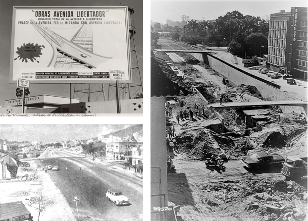 La avenida Libertador es sin lugar a dudas una de las arterias viales más importantes de la ciudad de Caracas. Su construcción fue iniciada en 1957 durante el régimen de Marcos Pérez Jiménez y, tras una interrupción de más de dos años, es retomada con decisión por el gobierno de Rómulo Betancourt entre 1959 y 1964 para finalmente ser inaugurada el martes 14 de diciembre de 1965 por el presidente Raúl Leoni, pese a que ya desde 1963 se había puesto parcialmente en funcionamiento. Se trata, por tanto, de una clara muestra de continuidad administrativa de las muchas de las que no se hace mención en el paso de la dictadura a la democracia venezolanas.