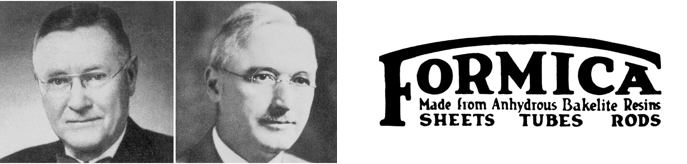 Izquierda: Daniel J. O’Conor y Herbert A. Faber fundadores de la sociedad Formica Products Company. Derecha: Logo original de Formica creado en 1917.