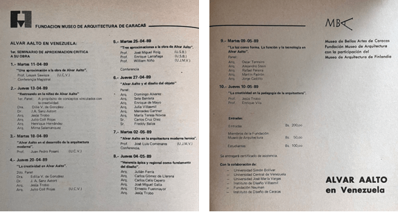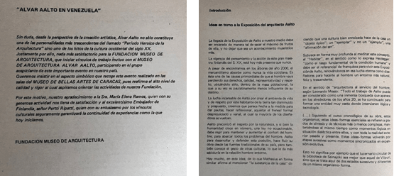 2 y 3. Catálogo de la exposición Alvar Aalto en Venezuela, Fundación Museo de Arquitectura/Museo de Bellas Artes de Caracas, 1989