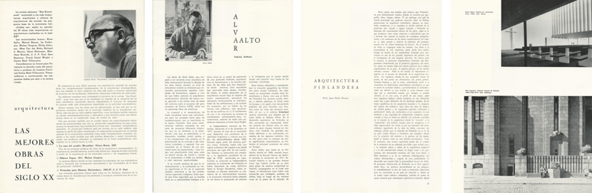 Pero muy particularmente resalta el hecho de que el nº26 (enero-febrero 1966) Punto dedicara buena parte de su contenido (15 páginas) a Aalto y Finlandia a través de los artículos “Arquitectura finlandesa” de Juan Pedro Posani, “Alvar Aalto” de Carlos Raúl Villanueva y “La arquitectura finlandesa y su fondo histórico” de Nils Erick Wickberg.