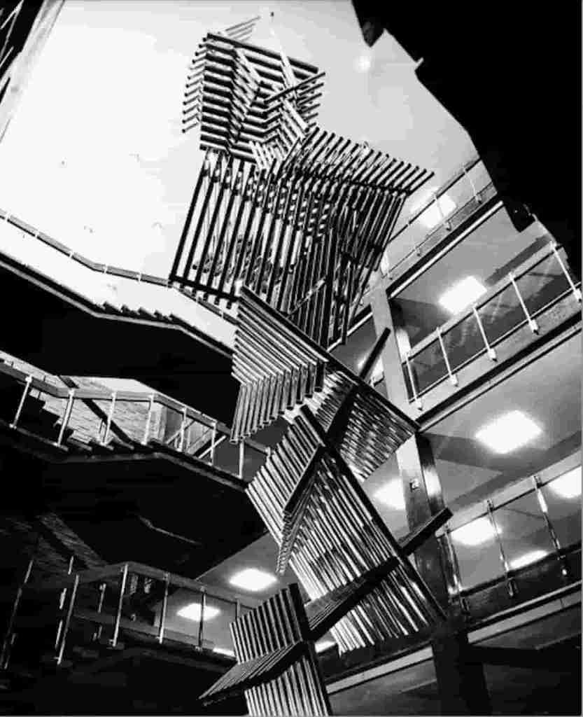 Un espacio de aprendizaje y encuentro – “El resultado visible no es nunca la pieza completa, ya que hay que tener en cuenta el proceso de su génesis”, apunta Reisinger. En desarrollo desde diciembre de 2023, a través de una convocatoria abierta a artistas, educadores y personas vinculadas a la obra de Gego, Reticulárea colectiva está constituida por módulos-piezas de diversas materialidades, enviadas desde distintos países alrededor del mundo; fragmentos que se suman a las espacialidades construidas por estudiantes de la Universidad Central de Venezuela (a cargo del profesor Diego González), de la Universidad de Los Andes (a cargo de la profesora Analy Trejo), y de la Universidad de Margarita (junto a los profesores Gustavo Izarra y Amanda Soriano). En esta suma, pensada desde lo colaborativo y lo formativo, los participantes construyeron módulos–piezas desde las posibilidades y limitaciones de sus contextos. De esta manera, el proyecto dialoga con la Reticulárea –la obra más reconocida y emblemática de Gego– no desde una intención mimética sino “desde un lugar simbólico, como una cartografía comunitaria de formas expansivas”, comenta Braceli, “abordando el nodo como un objeto de diseño, pero también como un espacio de intercambio y encuentro”.