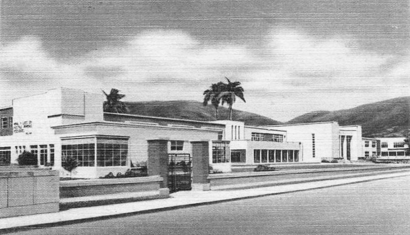 El edificio educacional con 12 aulas, laboratorios, talleres, auditorio con escenario, biblioteca, cooperativa, enfermería, dependencias para la dirección, salón para profesores, todo ello rodeado de espaciosos jardines, tuvo como su director al educador Rafael Parabacuto.
