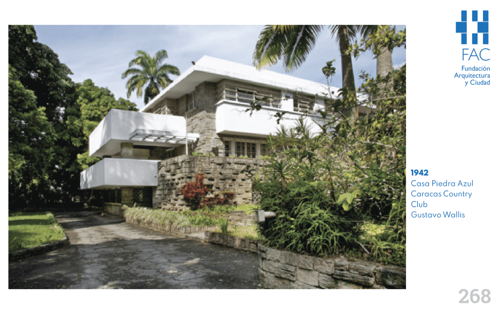 Otra de las piezas que ha pasado a ser icónica dentro de la arquitectura moderna venezolana es la casa que Gustavo Wallis Legórburu (1897-1979) proyectó para si mismo y su familia a finales de los años 30 del siglo XX y que terminó de construir en 1942: Piedra Azul. Como tal, se trata de un obra bien documentada, que ha sido objeto de diversas apreciaciones y descripciones y cuyo análisis crítico también ha sido accesible a través de diferentes fuentes.