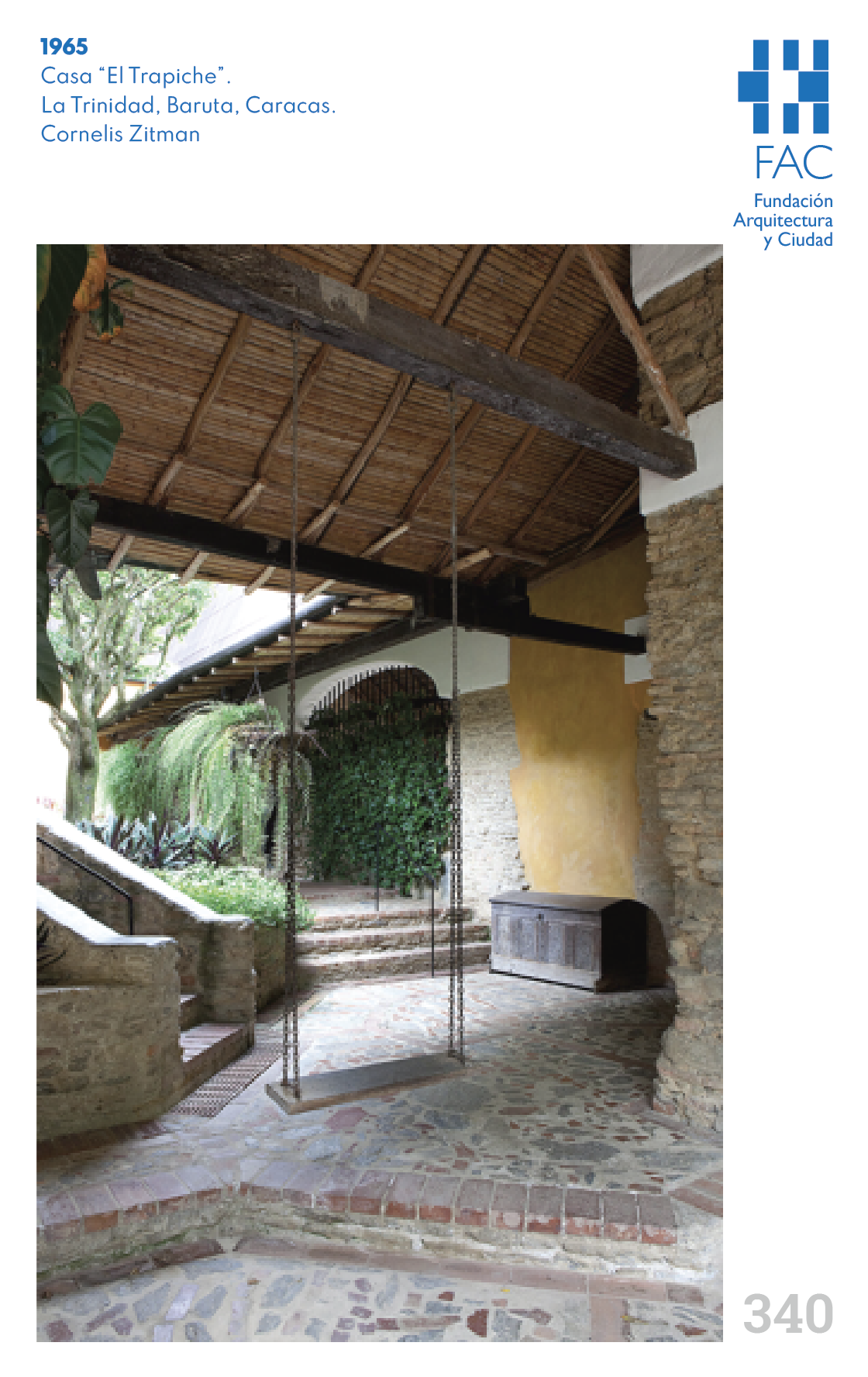 1964 es el año en que al escultor holandés residenciado en Venezuela, Cornelis Zitman emprende la búsqueda de un lugar para construir su vivienda y montar su taller de trabajo lo que lo lleva a adquirir en 1965 los restos del trapiche casi en ruinas de la hacienda La Trinidad del que solo se encontraba en pie la chimenea, cuatro muros y una rueda hidráulica. Zitman para resolver su casa-taller que bautizará como “El Trapiche”, se acopla a las ruinas del antiguo molino los cuales aprovecha para ir labrando, cuan escultor que era, su refugio íntimo mediante toda una aventura constructiva de carácter progresivo. Como señala el Catálogo del Patrimonio Cultural Venezolano (IPC, 2007): la casa “está bordeada por corredores que permiten acceso al dormitorio principal, estudio de escultura, taller de dibujo, lavandero y dos dormitorios. El lugar donde se encuentra la rueda del trapiche, al lado este de uno de los patios, alberga la biblioteca, la sala de exhibición, el estar, y el cuarto de trabajo, en un nivel superior al resto de la vivienda”.