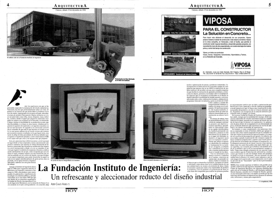 No es sino hasta 1989 con la aparición dentro de su estructura organizativa de la Unidad de Diseño (incorporada al Centro de Ingeniería Mecánica), que empieza a llenarse un vacío existente en el país correspondiente a la creación, adaptación u optimización de piezas y productos industriales. La incorporación en dicho proceso de avanzados equipos de computación que apoyaban casi en un 100% la elaboración de modelos teóricos y de un taller con una completa maquinaria que facilitaba la realización de ajustados prototipos y series cortas de objetos, permitieron a la Unidad cubrir la totalidad de los aspectos que se encuentran involucrados en el diseño industrial abriendo la posibilidad de brindar asesoría y servicios adicionales tales como: elaboración de planos, adaptación de programas CAD a la industria, cursos en el área CAD/CAE o análisis y estudio del comportamiento dinámico y estático de piezas en el computador. El autofinanciamiento, vale la pena recalcarlo, se encontraba detrás de todos los esfuerzos desarrollados por la institución en ofrecer servicios pese a ser un ente público. Ya para 1992 el Instituto y en particular su Unidad de Diseño, permitía lucir como logros visibles, entre otros, desde carcasas para contener circuitos electrónicos hasta un cortador industrial de papas, pasando por la mejora del diseño del cartón de huevos que en aquel momento se destinaban a la exportación o la optimización de piezas dentro de la maquinaria de determinadas empresas.