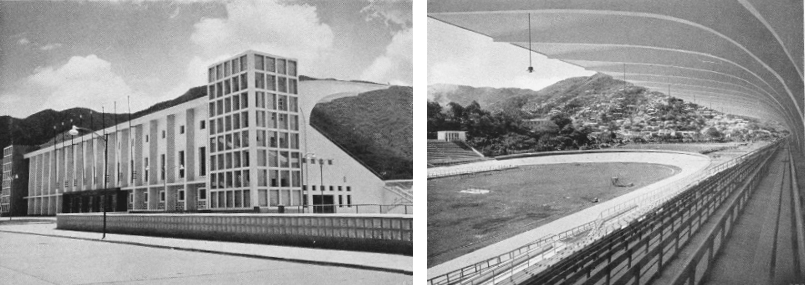 Pues bien, el conjunto de obras que completaban las instalaciones de los III Juegos Deportivos Bolivarianos, terminadas y/o acondicionadas todas a tiempo, estaba conformado por: canchas de tenis (ubicadas también en la Ciudad Universitaria); piscinas para las competencias de natación y saltos ornamentales (Escuela Militar de El Valle); polígono de tiro y gimnasio cubierto con cancha de madera (Fuerte Tiuna); canchas de golf (Caracas Country Club); deportes bajo techo (salones del Club Venezuela); levantamiento de pesas (Auditorio del Liceo Fermín Toro); deportes ecuestres (Estadio Olímpico, Cuartel Ambrosio Plaza y terrenos de la Escuela Militar de El Valle); basquetbol y volibol (Nuevo Circo); y, finalmente, competencias ciclísticas, en La Vega, sobre la prolongación de la avenida Páez de El Paraíso (hoy avenida Teherán o intercomunal de Montalbán) a realizarse en un nuevo velódromo con capacidad para 12.000 espectadores.