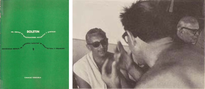 3. Izquierda: nº 9 del Boletín del CIHE dedicado por completo al Seminario “Situación sobre la historiografía de la arquitectura latinoamericana”. Derecha: Benevolo, Posani y Villanueva en Margarita