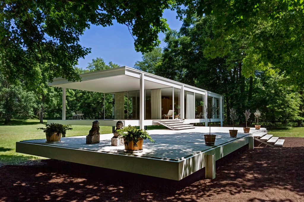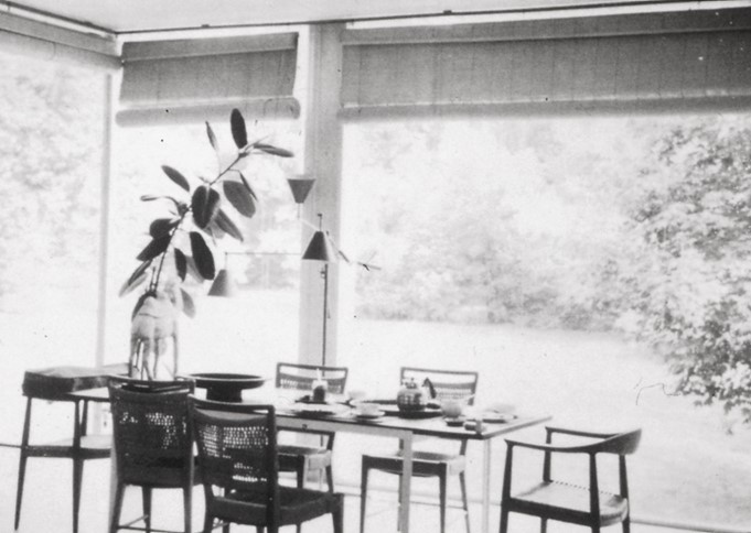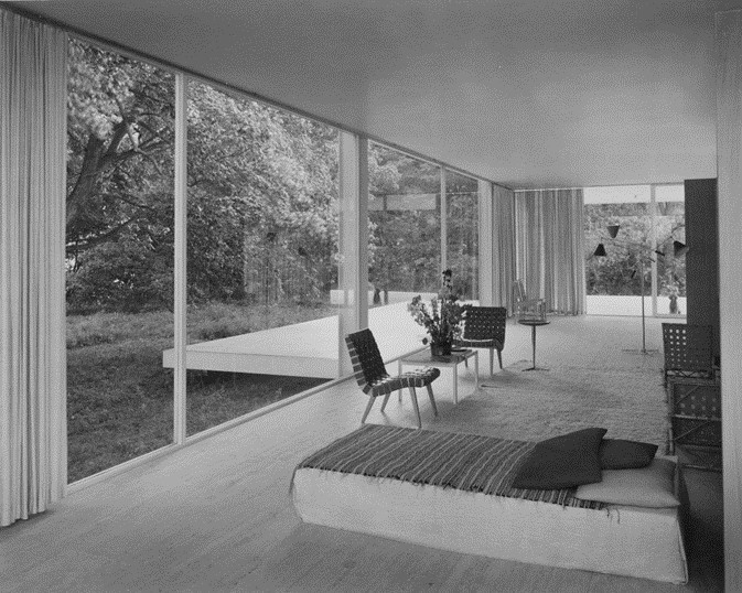 La casa del condado concebida en 1945 por el arquitecto Ludwig Mies van der Rohe para la médico investigadora líder de Chicago, la Dra. Edith Farnsworth, se completó en 1951. Mientras que la Dra. Farnsworth le permitió a Mies el control casi total del diseño de la casa, ella rechazó sus muebles a favor de muebles modernos de otros diseñadores notables, incluidos Florence Knoll, Jens Risom, Bruno Mathsson y Franco Albini. Cuando Edith comenzó a pasar más tiempo en su casa de campo, a fines de la década de 1950 y principios de la de 1960, también agregó muebles tradicionales y antigüedades chinas.