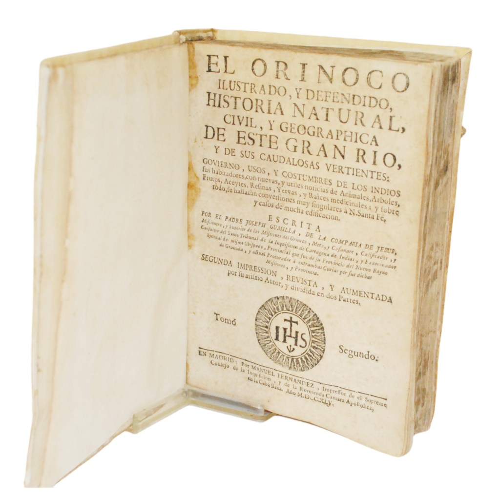9. Segundo tomo de la segunda edición revisada y aumentada (1945) de El Orinoco ilustrado, y defendido. Historia natural, civil y geographica de este gran río y de sus caudalosas vertientes: govierno, usos y costumbres de los indios, sus habitadores, con nuevas, y utiles noticias de Animales, Arboles, Frutos, Aceytes, Resinas, Yervas y Raices medicinales; y sobre todo se hallaran conversiones muy singulares a N. Santa Fe, y casos de mucha edificacion. Es en esta obra donde apareció como acompañante el «Mapa de la Provincia y missiones de la Compañía de Jesús del Nuevo Reyno de Granada».