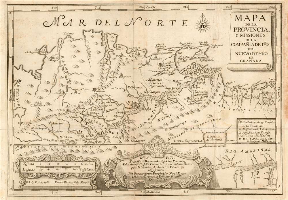 El “Mapa de la Provincia y missiones de la Compañía de Jesús del Nuevo Reyno de Granada” de 1741, de 27 x 40 cm. que abarca lo que hoy es gran parte de Venezuela, Colombia y parte de las Guayanas, es un mapa fundamental para entender la historia de la Orinoquía, pues ayudó a la Corona a comprender la importancia estratégica de la red fluvial para conectar el interior del continente (Santa Fe de Bogotá) con el Atlántico, y para frenar la expansión extranjera desde las Guayanas. Es una pieza clave de la cartografía colonial venezolana y colombiana, que combina la observación científica de los jesuitas con la mitología de la época.