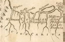 6. Ubicación al extremo este del mapa de las «Colonias de Holandeses» y de las «Misiones de los Padres Jesuitas de Francia».