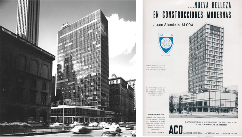Ya antes en Caracas, con la realización de la Torre Polar (1953) de Vegas & Galia Arquitectos Asociados, el “curtain wall” hizo por primera vez su aparición recubriendo por igual los cuatro frentes de un edificio a todas luces emblemático que buscaba, dada su localización, impactar y constituirse en símbolo recogiendo la tradición de los rascacielos newyorkinos. Esta atrevida y polémica decisión de tratar indiscriminadamente las cuatro fachadas de la edificación con un material de comportamiento uniforme ante el asoleamiento, se enfrentó provocadoramente a las enseñanzas que con relación a las consideraciones climáticas había ido mostrando Carlos Raúl Villanueva en el desarrollo de la Ciudad Universitaria de Caracas y los mismos Vegas & Galia a través de su propia obra temprana.